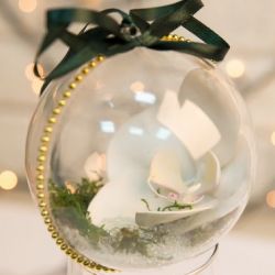 Сказочный новогодний шарик, внутри которого притаилась нежная орхидея.