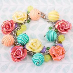 Яркий летний комплект из браслета и серёжек, украшенных крупными керамическими розами-бусинами, добавит вашему образу цвета и шарма.