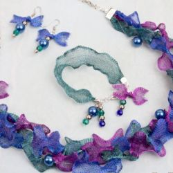 Яркие цвета этого колье, браслета и серёжек радуют глаз – такой комплект украшений не останется незамеченным!