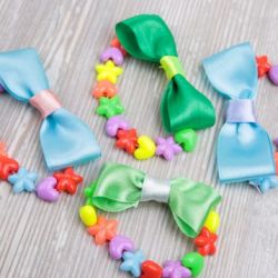 Разноцветный браслет из мелких бусин, украшенный атласным бантом – нарядно и задорно!