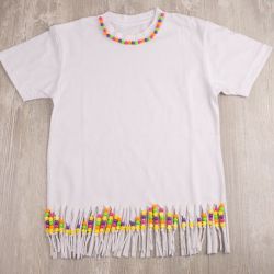 Необычное решение для обычной футболки! Разноцветные бусины и бахрома придадут простой футболке новый облик!