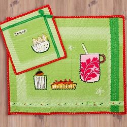 Салфетка-подставка для чайных принадлежностей и пара салфеток, украшенных симпатичными аппликациями, к ней в тон – всего пара деталей, и обычное чаепитие превращается в приятное событие!