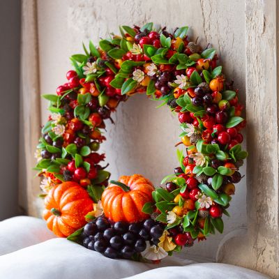 Создаем декор для дома в виде флористического венка я виноградом и цветами.