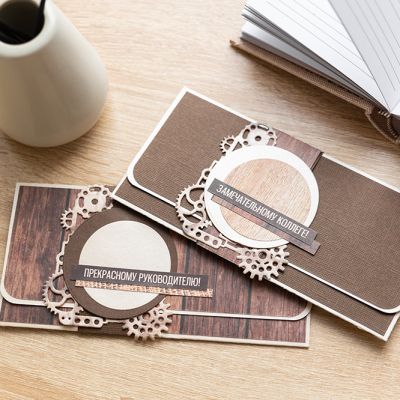 Создадим пару подарочных конвертов в строгом мужском стиле с помощью техники скрапбукинга.