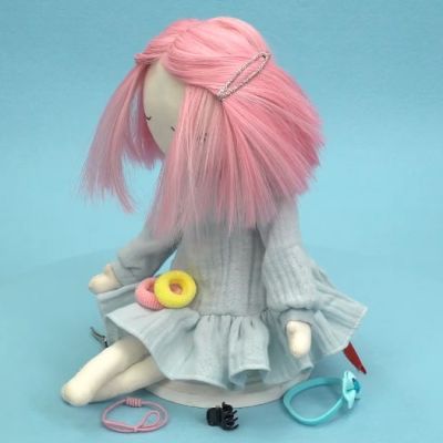 При желании можно придать светлым волосам свой собственный оттенок – окрасить с помощью красителей для текстиля. Подходят трессы как для изготовления текстильных кукол, так и для реставрации резиновых и пластиковых кукол.