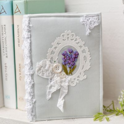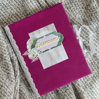 Блокнот с винтажным настроением в технике скрапбукинг с кружевом и вырубками.
