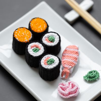 Перед вами оригинальный рецепт приготовления суши и роллов. Ингредиенты: разноцветные нити, пара металлических крючков и ваши золотые руки! И мы получаем нетривиальное блюдо для ваших глаз!