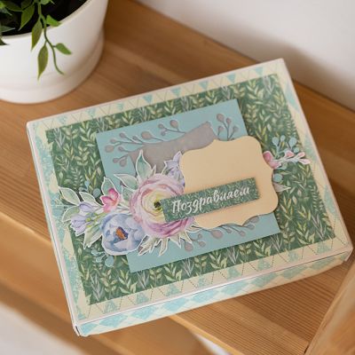 Декорируем коробочку фигурными элементами и рамочками в технике скрапбукинг.
