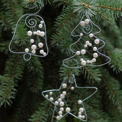 Делаем новогодние игрушки из мягкой проволоки и жемчужных бусин.