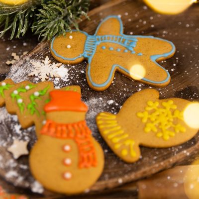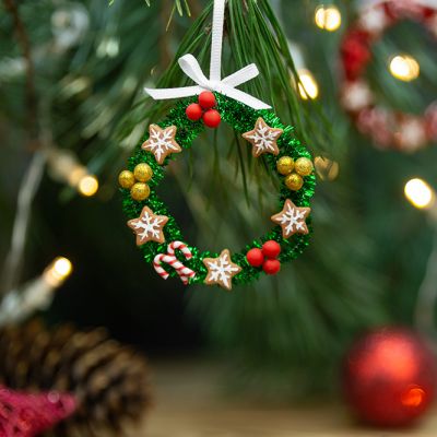 Праздничный венок, украшенный печеньем из полимерной глины, поможет создать новогоднее настроение.