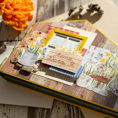 Создаем многослойную открытку «С днем рождения!», украшенную цветами.