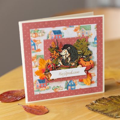 Создаем многослойную открытку «Поздравляю тебя!» с композицией из полевых цветов.