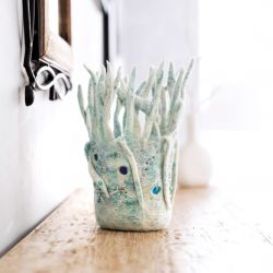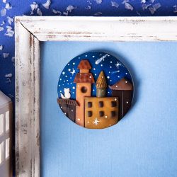 Украшаем кружку в зимнем стиле декором из полимерной глины, пастели и акрилового контура. Создаём на чашке снежную городскую ночь с помощью полимерной глины, пастели и акрилового контура.