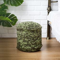 Вяжем руками декоративный пуф из фасонной ленточной пряжи.