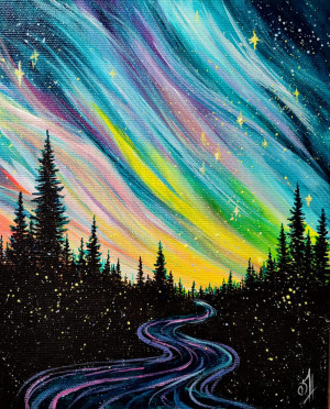 На мастер-классе по живописи акрилом мы изобразим яркое северное сияние, картина светится в темноте.
