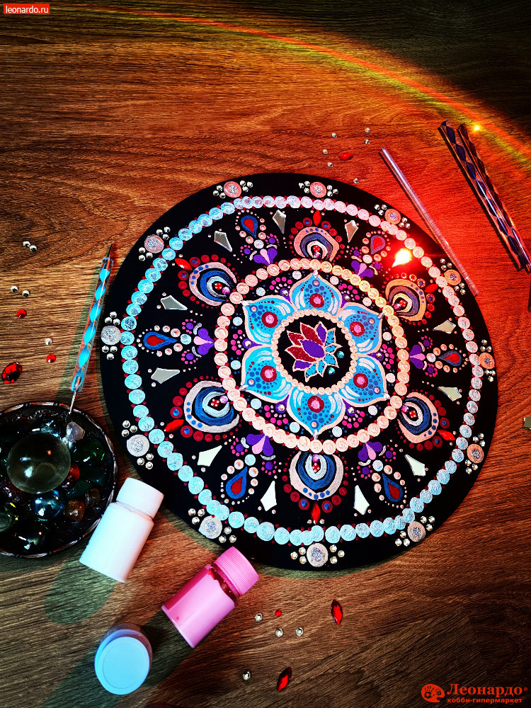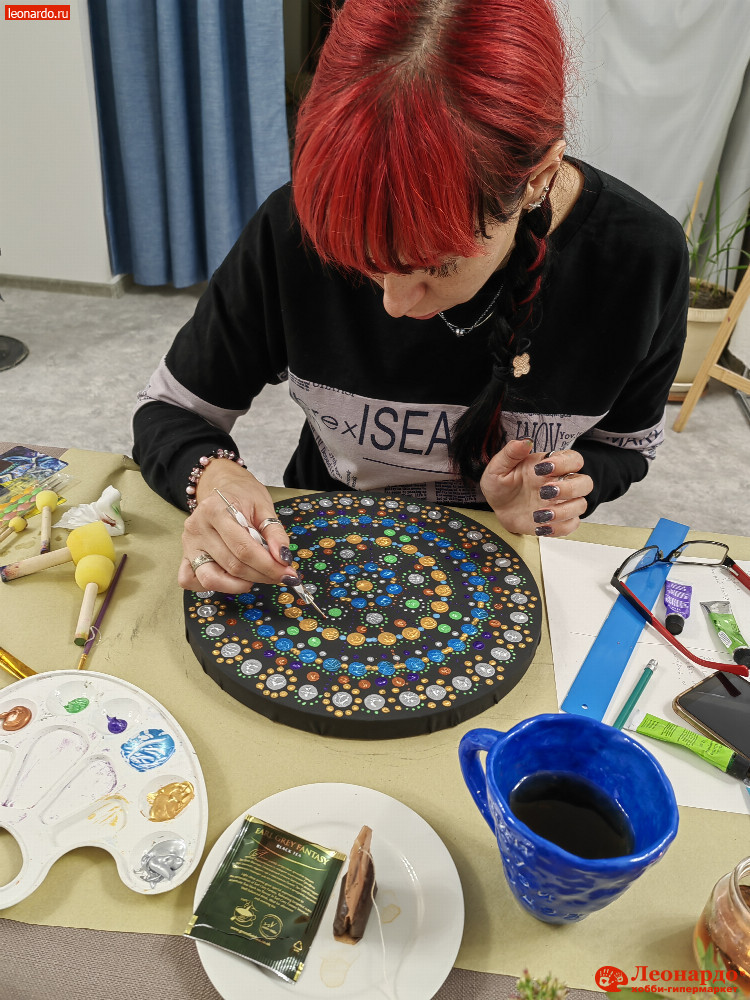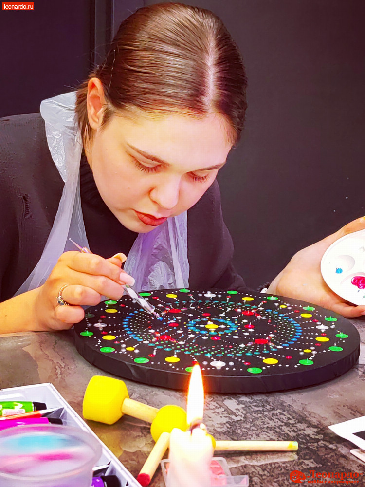 Приглашаем вас погрузиться в уникальный опыт создания мандалы, которая станет символом изобилия в вашем доме! Такой сеанс мандалотерапии подарит вам полное расслабление и возможность «выключить» внутренний диалог. Вы научитесь легкой точечной росписи мандалы, а также сможете ее кастомизировать, используя натуральные камни, стразы и блестки.