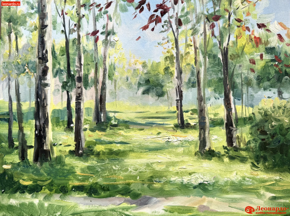 Картина маслом «Роща под светом солнца»