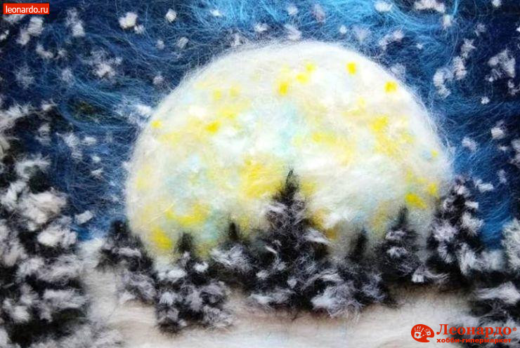 Шерстяная акварель «Зимний лес»