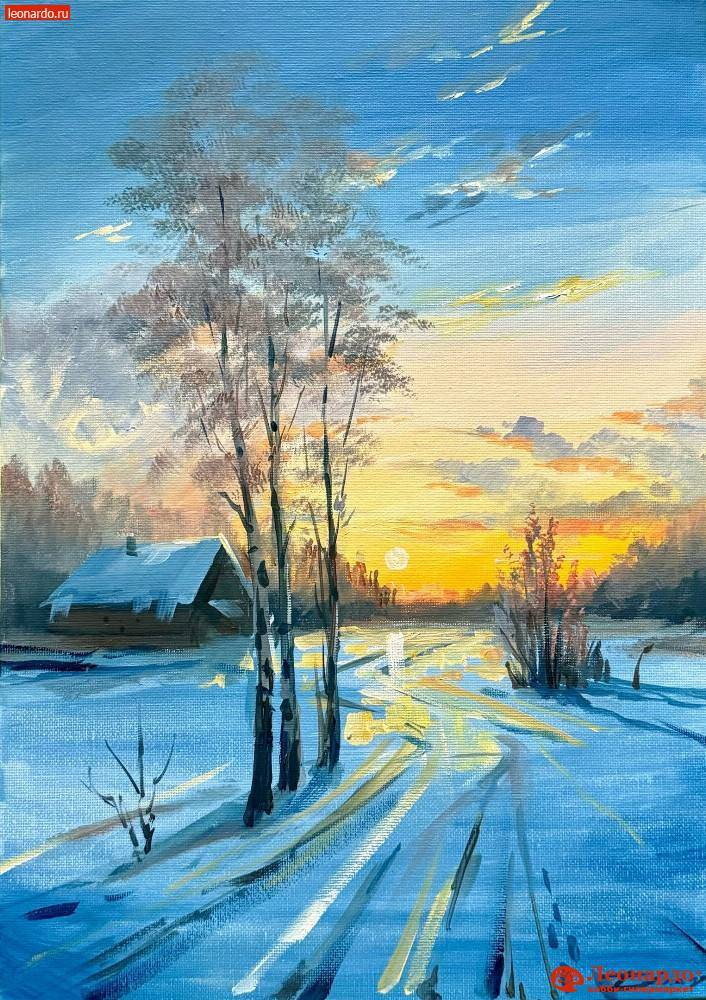 На мастер-классе вы напишете масляными красками атмосферный зимний пейзаж. Вы освоите технику написания холодного закатного неба, научитесь изображать отблеск света на снегу. Такая картина украсит ваш интерьер или послужит необычным подарком.