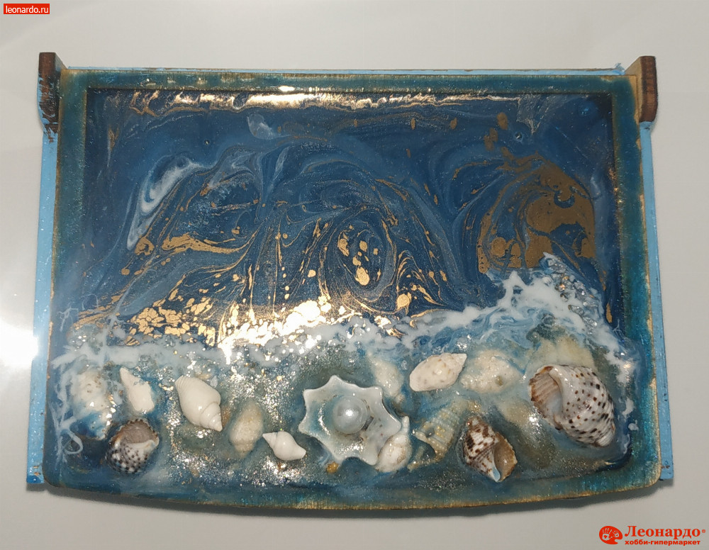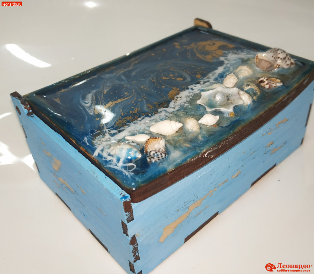 На мастер-классе мы декорируем крышку эпоксидной смолой, а стороны деревянной шкатулки украсим потертостями.