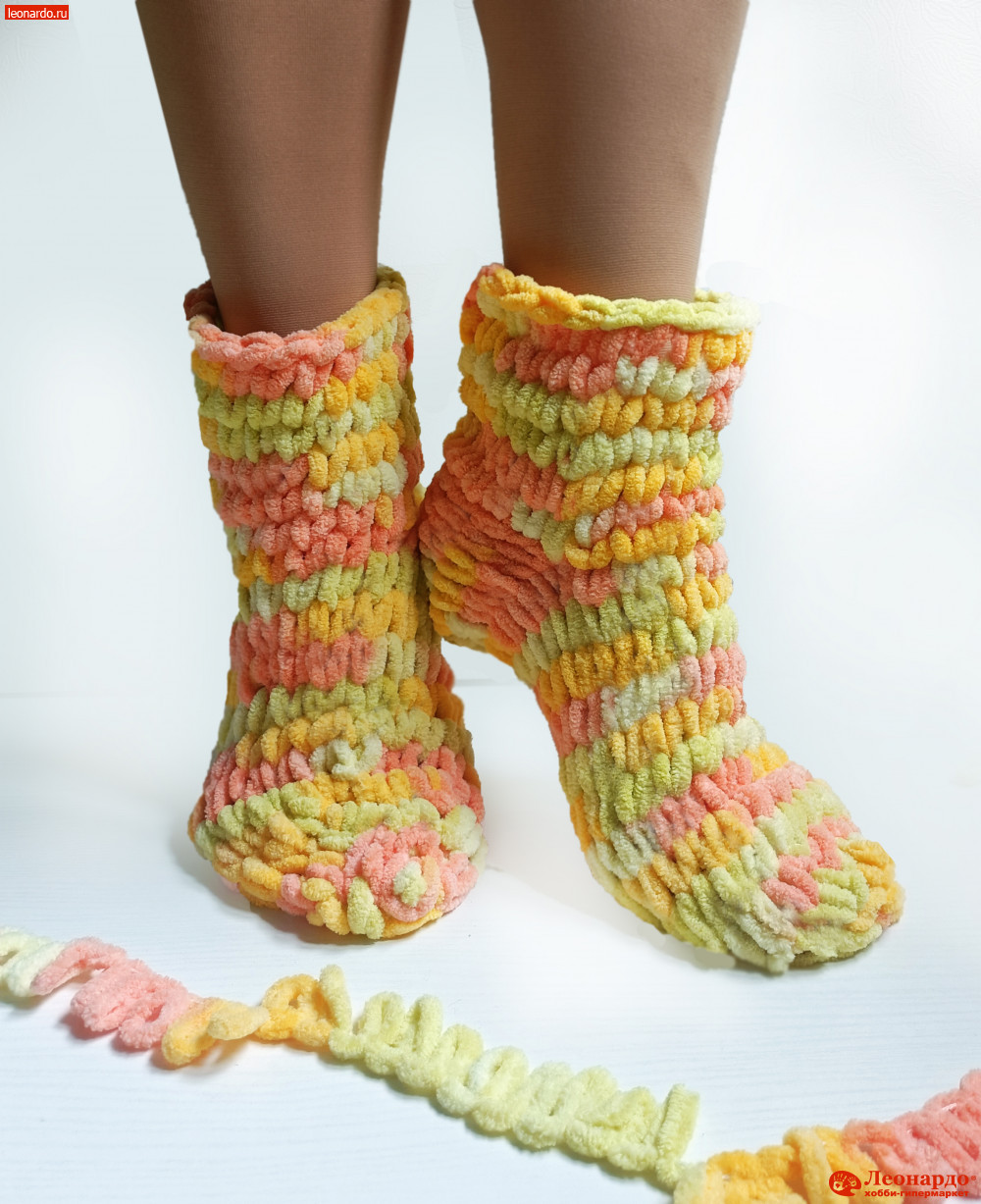 Теплые носочки из пряжи с петельками без спиц и крючка