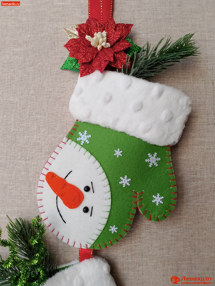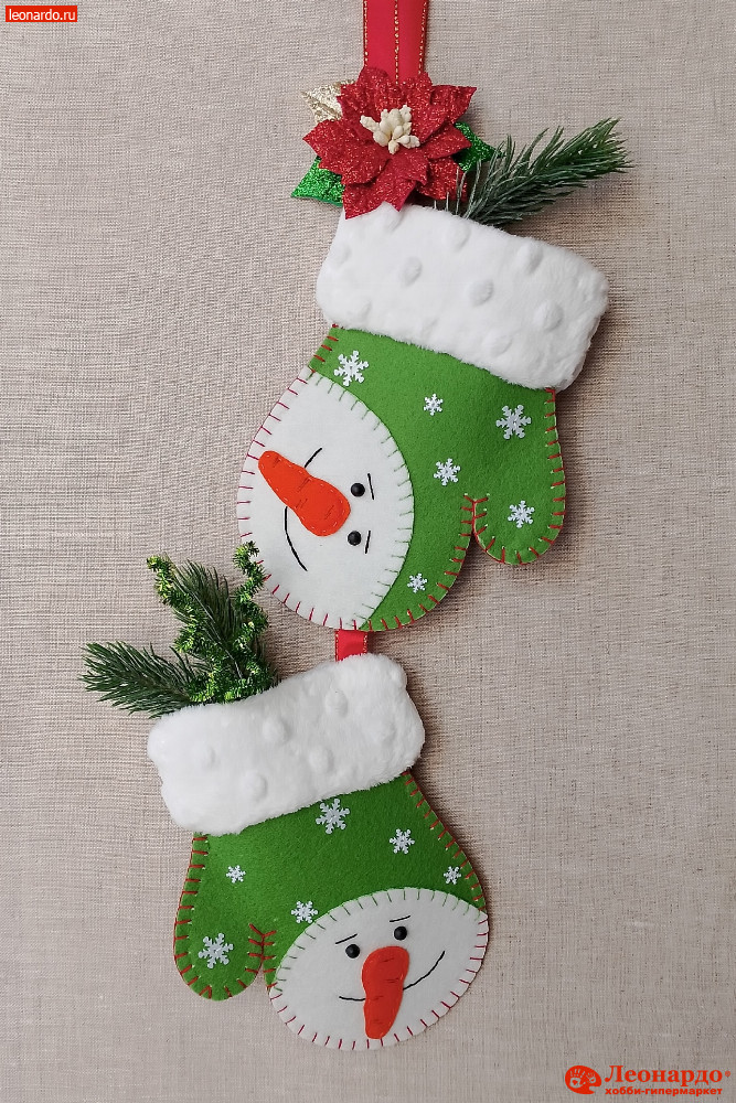 На мастер-классе мы будем создавать новогодний декор из фетра. Мастер поможет выкроить детали варежек по лекалу, покажет приемы обшивки.
