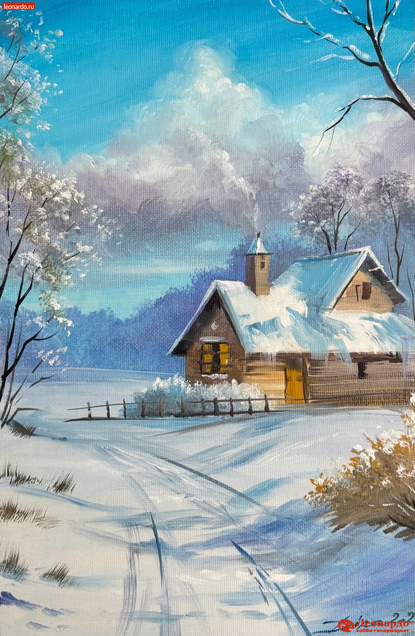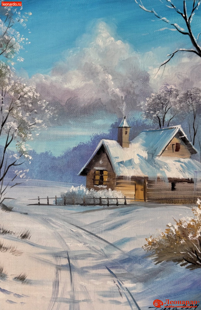 На мастер-классе вы освоите базовые навыки работы с масляными красками и напишете милый зимний пейзаж. Вы научитесь изображать заснеженные деревья, уютный домик в снегу, переносить на холст нежные оттенки зимнего неба.