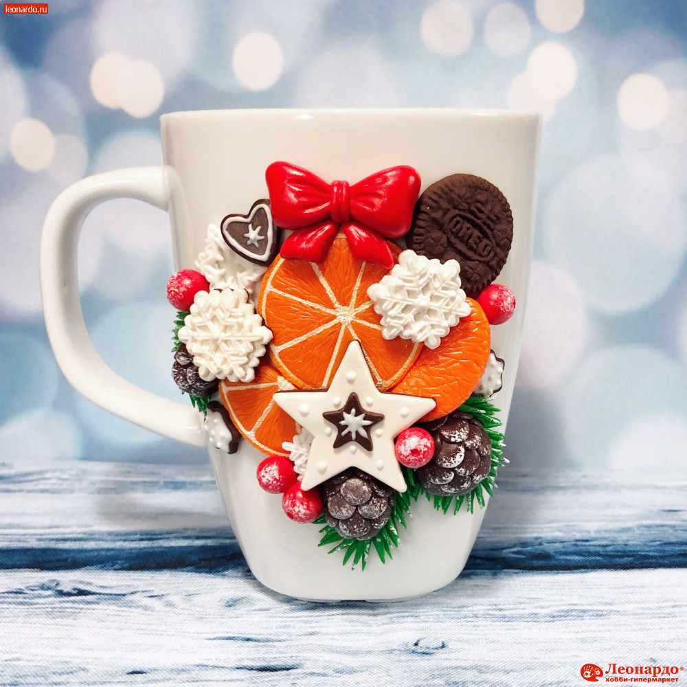 На мастер-классе Вы научитесь лепить имитации долек мандарина, печенье и пряники с глазурью, ягоды, шишки и еловые веточки. И соберете из них композицию на кружке.