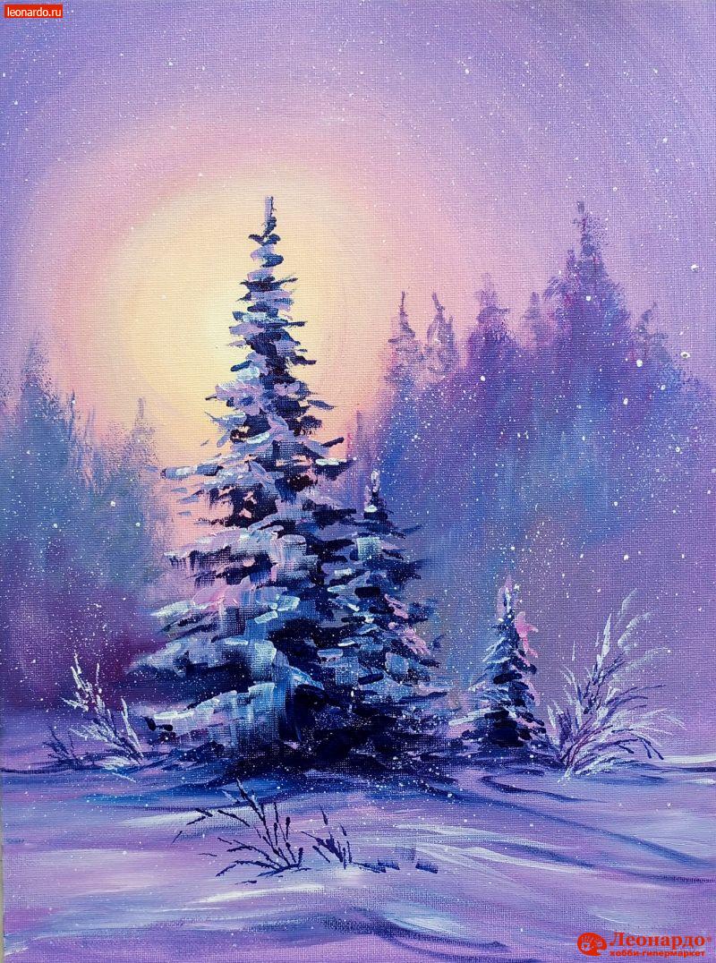 На мастер-классе вы освоите базовые навыки работы с масляными красками и напишете сказочный зимний пейзаж. Вы научитесь изображать заснеженные ели, лес в утренней дымке, переносить на холст нежные оттенки зимнего неба.
