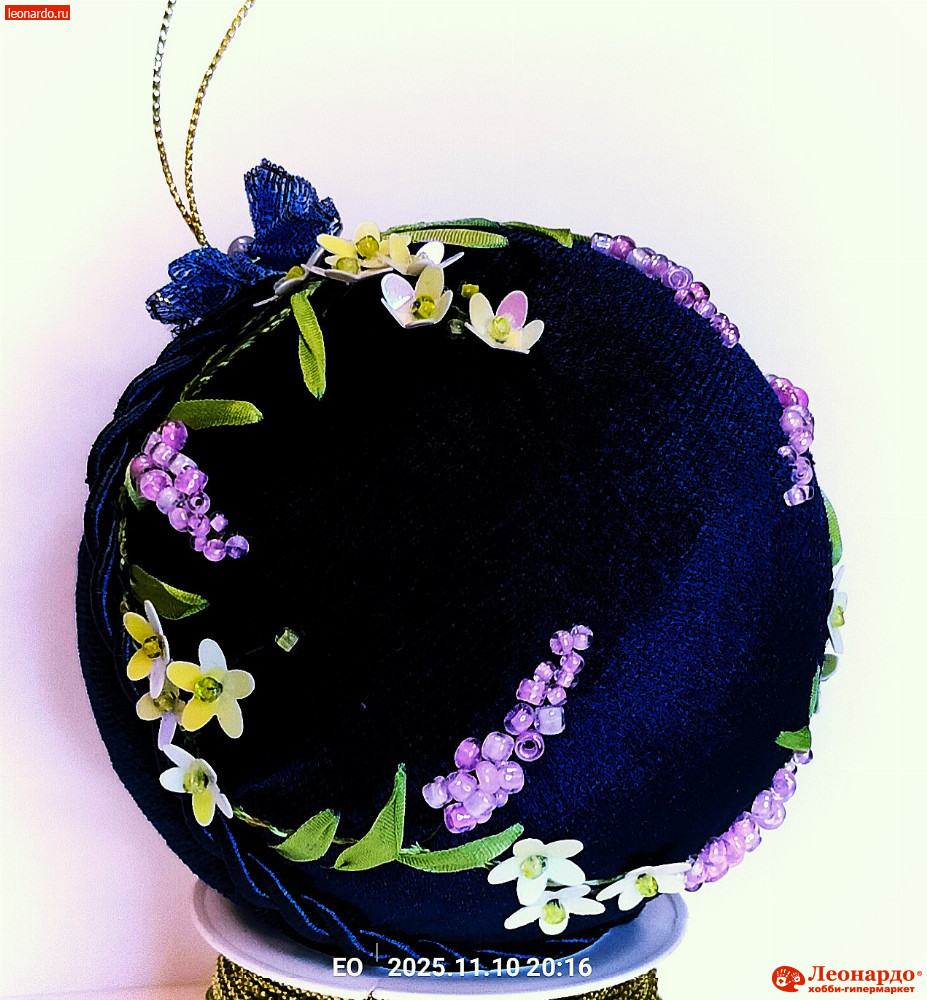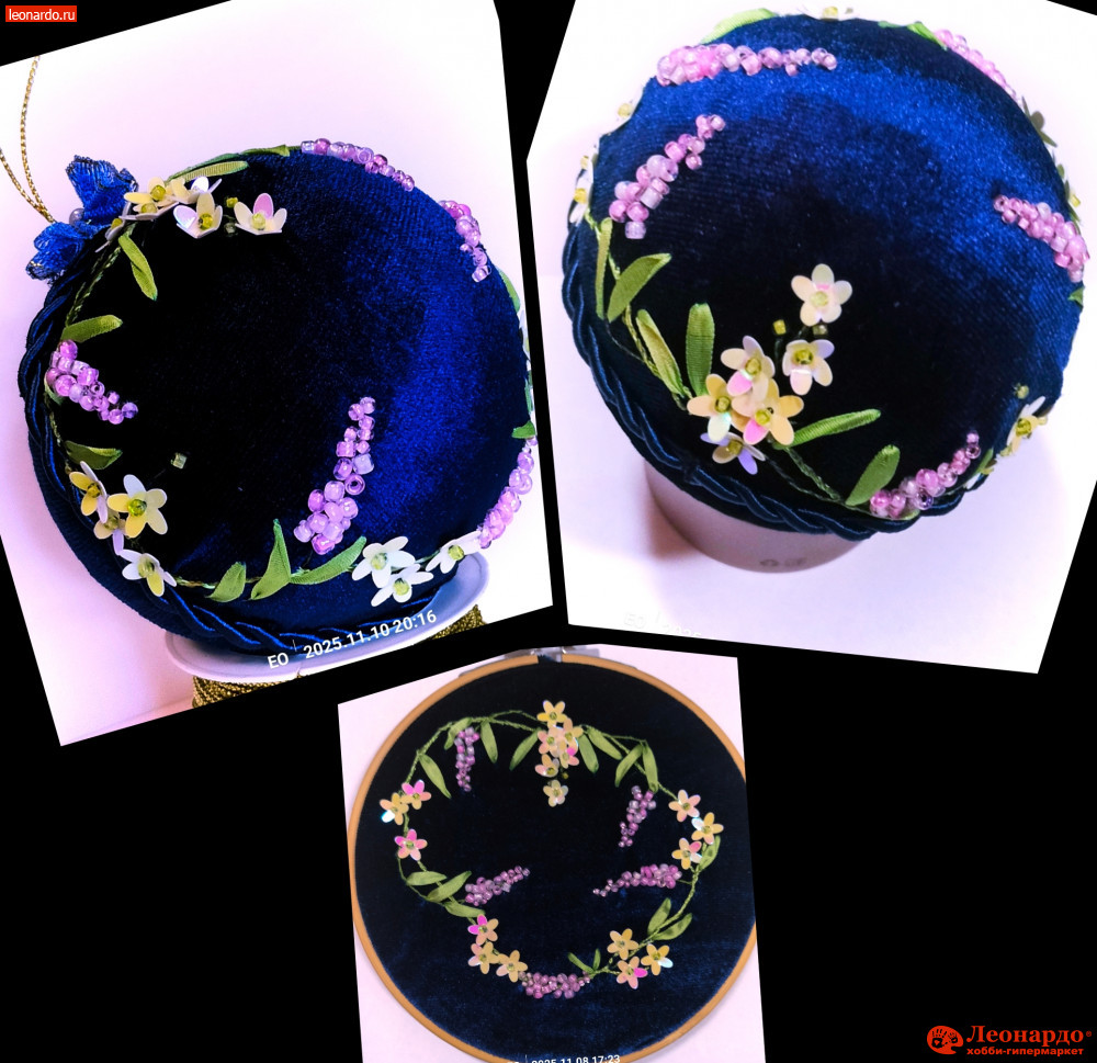 На мастер-классе вы получите навыки объемной вышивки по бархату шелковыми лентами, бисером и пайетками. На основе пенопластовой заготовки мы создадим сувенир, который долгие годы будет радовать, наполнять дом теплом и уютом, передавая атмосферу праздника. Новогодний шар может также стать оригинальным подарком.