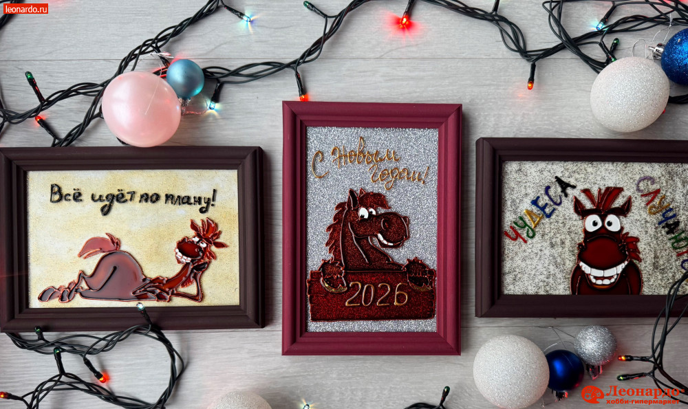 На мастер-классе вы создадите под руководством наставника 1 витражную картину на выбор со знаменитым конем - символом 2026 года.