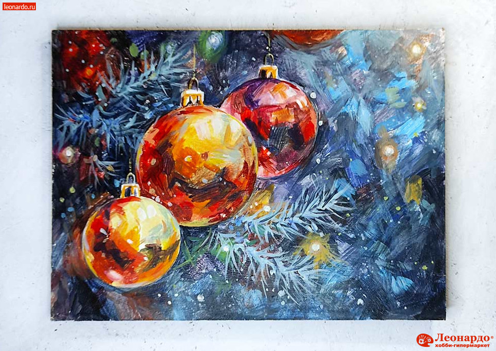 Картина акрилом "Елочные игрушки"