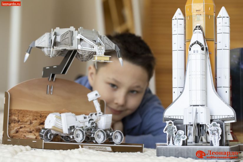 • 3D-пазлы REZARK из фанеры и пенокартона: серии «космос» и «природа», здания (кукольные домики и знаменитые архитектурные памятники), различные виды транспорта;