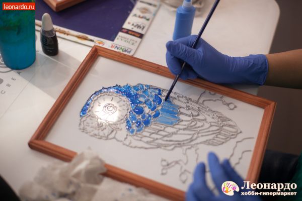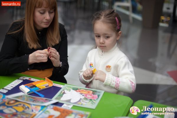 А завтра вас ждёт роспись футболки «Вальс цветов», вязаная игрушка «Ёжик в тумане», сборка украшений «Голубая лагуна», нежные бусы в технике мокрое валяние, термомозаика и рисование пастелью для детей. А также награждение победителей конкурса детского рисунка и викторины Леонардо – приходите!
