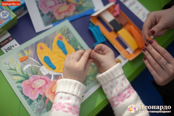 На детских мастер-классах для самых маленьких лепили чудесные картины из пластилина:
