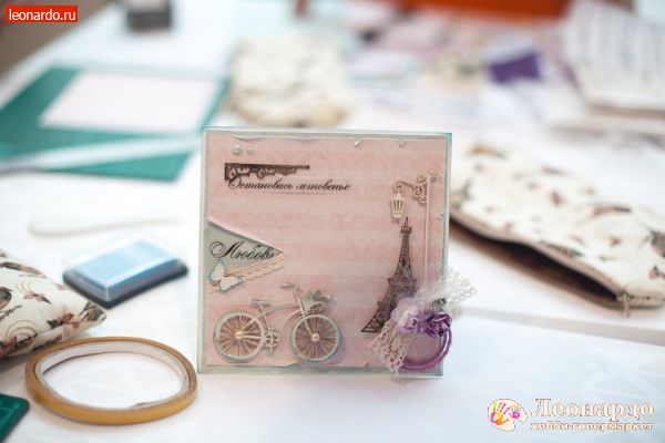 Романтика весны чувствуется в каждом изделии! Прекрасную незнакомку в красном сменяет открытка «Париж», выполненная в технике скрапбукинг: