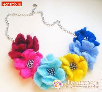 Такое яркое и солнечное колье из цветов в технике мокрое валяние вы сможете сделать своими руками: