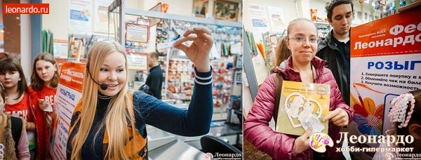 В период проведения фестиваля совершите покупку в хобби-гипермаркете Леонардо, предъявите чек ведущему, получите купон и примите участие в розыгрыше! Купон участвует в розыгрышах в день его приобретения.