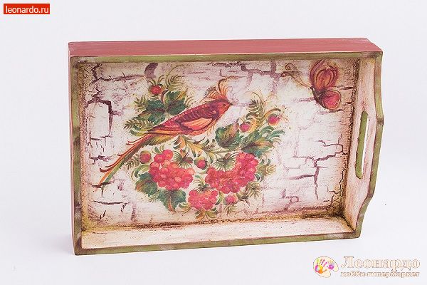 - Поднос «Под Хохлому» в технике декупаж – любой хозяюшке в радость!