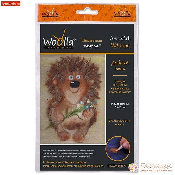 •Картина из шерсти «Добрый ёжик» по наборам тм Woolla. «Шерстяная акварель» – новая, интересная и не очень сложная техника, которая всё же имеет свои секреты. Поэтому советуем сделать свою первую картину под руководством мастера. Готовую работу можно оформить в стандартную раму формата А5.