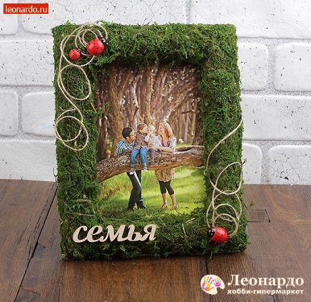 Эко-рамка для фотографии «Кусочек лета». Новый год – семейный праздник, и подарки надо делать соответствующие! Так уж устроены люди, что зимой вспоминают лето, а в жару думают о зиме. Этот аксессуар сделан из папье-маше и декорирован натуральным мхом – очень стильно и экологично!