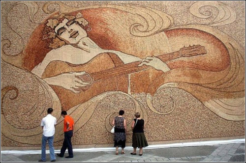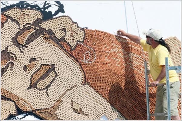 Заколачивая тысячи гвоздей в деревянную доску и приклеивая пробки к полотну, албанский художник Саимир Страти (Saimir Strati) создает потрясные современные мозаики. Удивительно, насколько богатой фантазией обладает художник, и как человеку хватает терпения создавать подобное искусство.