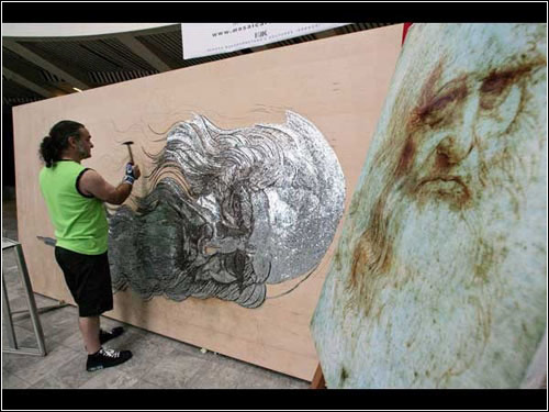 В 2006 году албанский художник начал работать над своеобразной репродукцией автопортрета Леонардо да Винчи. Для создания полотна размером 2x4м было использовано 400 килограммов гвоздей. Техника напоминает цифровую фотографию, где каждый гвоздь можно рассматривать как пиксель. Рекорд был засвидетельствован в Тиране и занесен в Книгу рекордов Гиннеса как самая большая в мире мозаика из гвоздей.