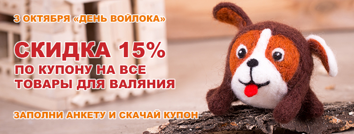 Скидка 15%** по купону* на товары для валяния действует 3 октября 2017 года во всех хобби-гипермаркетах «Леонардо».