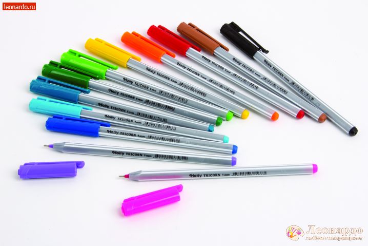 Ручки оценят и любители современных техник рисования. Кроме стандартных цветов в палитре Holly TRICORN есть: бирюзовый, голубой, жёлтый, коричневый, оранжевый, пурпурный, розовый и светло-зелёный. Толщина линии письма – 1 мм. И с их помощью можно не только писать, но и творить картины, напоминающие компьютерную графику или гравюры: