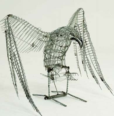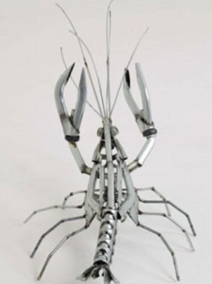 Распиливая трофеи, выловленные в реках, озерах и каналах, Дрю готовит "материал" для своих произведений. А через какое-то время мы видим перед собой вовсе не груду блестящего металла, а птичку, зверушку или даже целую миниатюру...