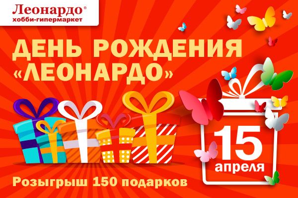 Ежегодно 15 апреля мы отмечаем День рождения «Леонардо». И в этом году мы снова проводим наш уже традиционный Розыгрыш подарков, в котором можно выиграть сертификаты «Леонардо» номиналом 1 000 рублей.