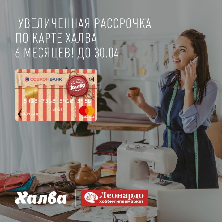 В течение всего апреля, до 30.04.20, в интернет-магазине «Леонардо» действует увеличенная рассрочка на покупки, оплаченные картой «Халва». При покупках на сумму меньше 10 000 рублей рассрочка будет действовать три месяца, при покупках от 10 000 рублей – целых полгода!