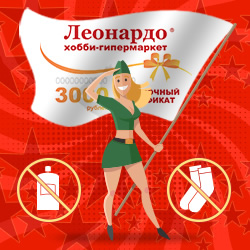 Торговая сеть «Леонардо» 15 апреля дарит своим покупателям скидку 15% на весь ассортимент: в хобби-гипермаркетах – при покупке от 1500 рублей, в интернет-магазине – от 3000 рублей. Скидка действует во всех магазинах!