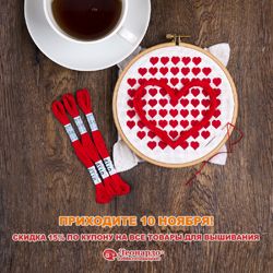10 ноября во всех хобби-гипермаркетах «Леонардо» действует акция на товары для вышивания (включая вышивальные машинки, лупы и лампы для комфортной работы). Скидка 15% возможна только при наличии купона. Узнайте подробности и приходите на праздничную распродажу!